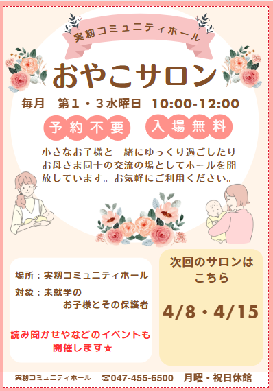 お子様との時間を 実籾コミュニティホールで楽しく過ごしませんか?
